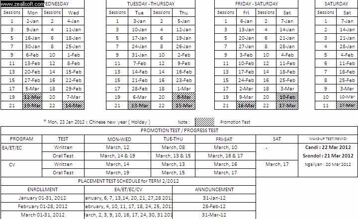 SCHEDULE OF LBPP LIA SEMARANG CANDI, NGALIYAN, AND SRONDOL. TERM 01/2012